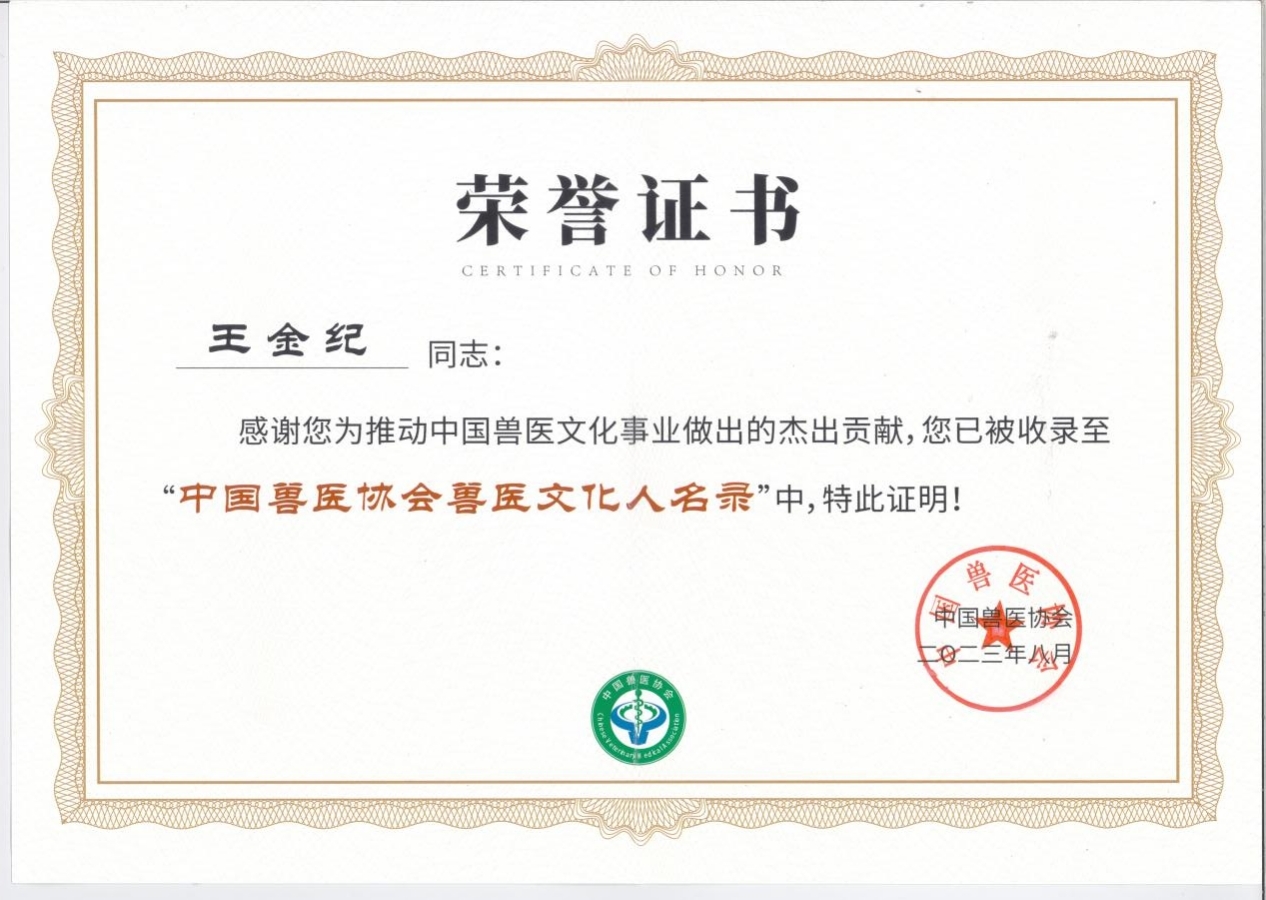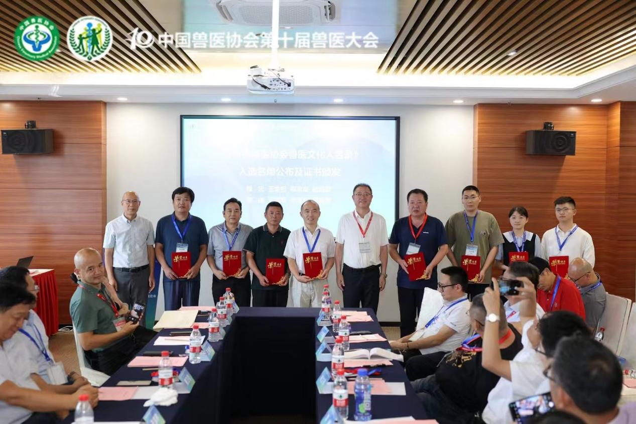 會(huì )議在熱情洋溢的氛圍中進(jìn)行,中國獸醫協(xié)會(huì )常務(wù)副會(huì )長(cháng)辛盛鵬致辭后,會(huì )議公布了備受關(guān)注的《中國獸醫協(xié)會(huì )獸醫文化人名錄(第一批)》入選名單,山東中農普寧藥業(yè)有限公司技術(shù)總監王金紀等八人因在獸醫文化事業(yè)中做出的杰出貢獻,成功入選第一批名單。